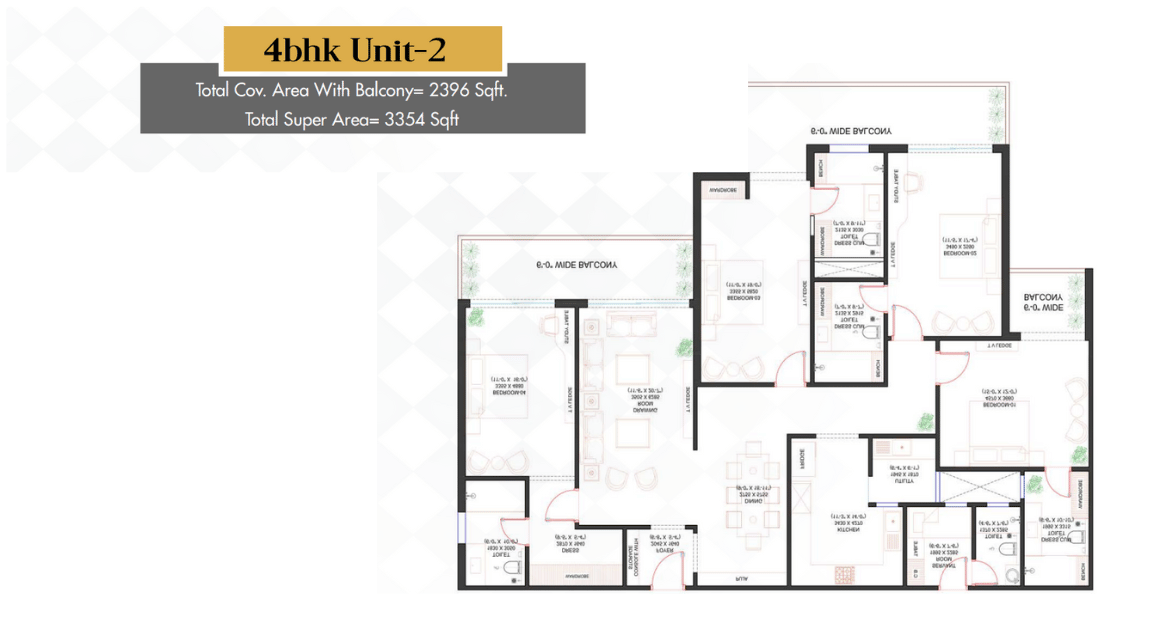 - The area of flats are starting form 2589 – 4324 Sq.ft.